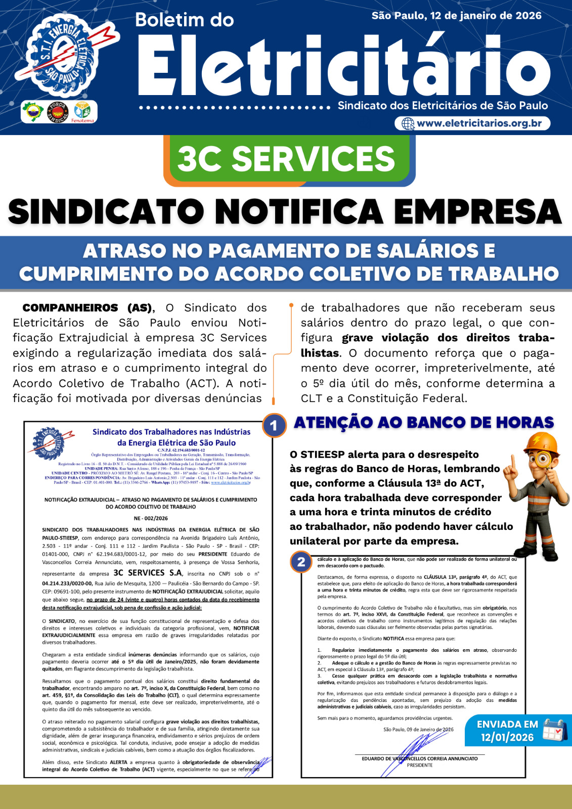SINDICATO NOTIFICA - 3C SERVICES - ATRASO NO PAGAMENTO DE SALÁRIOS E CUMPRIMENTO DO ACORDO COLETIVO DE TRABALHOpdf