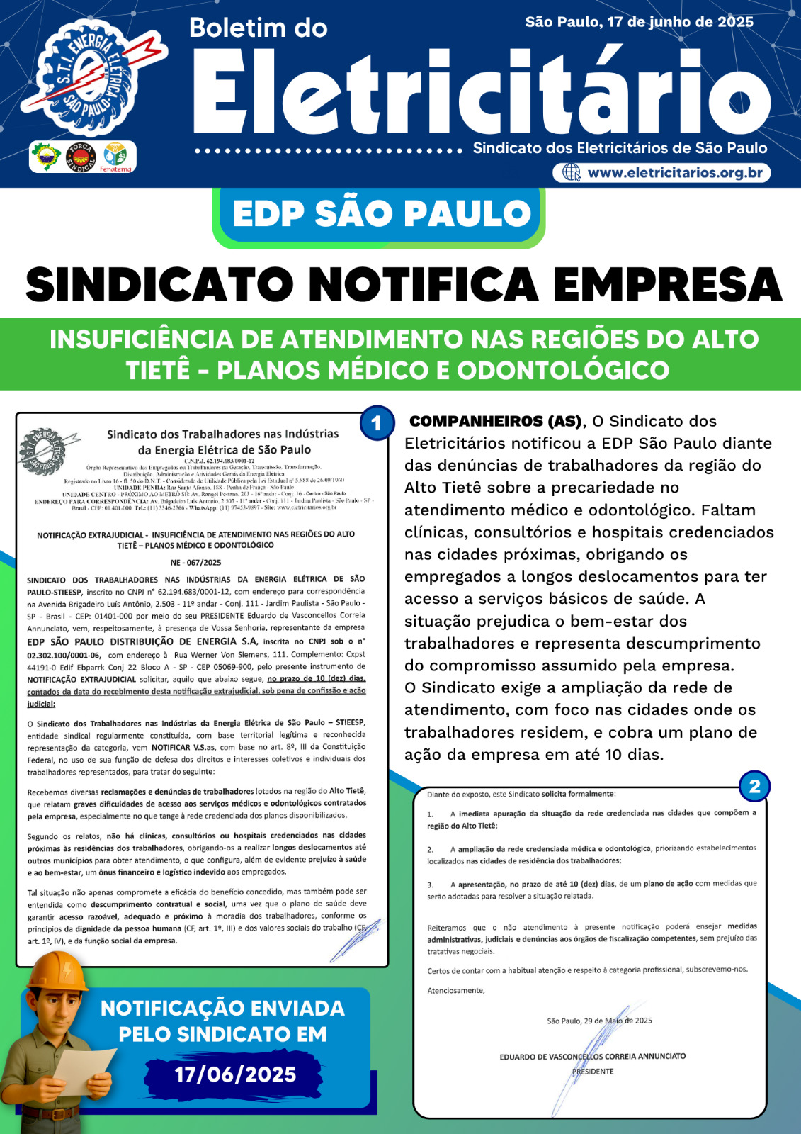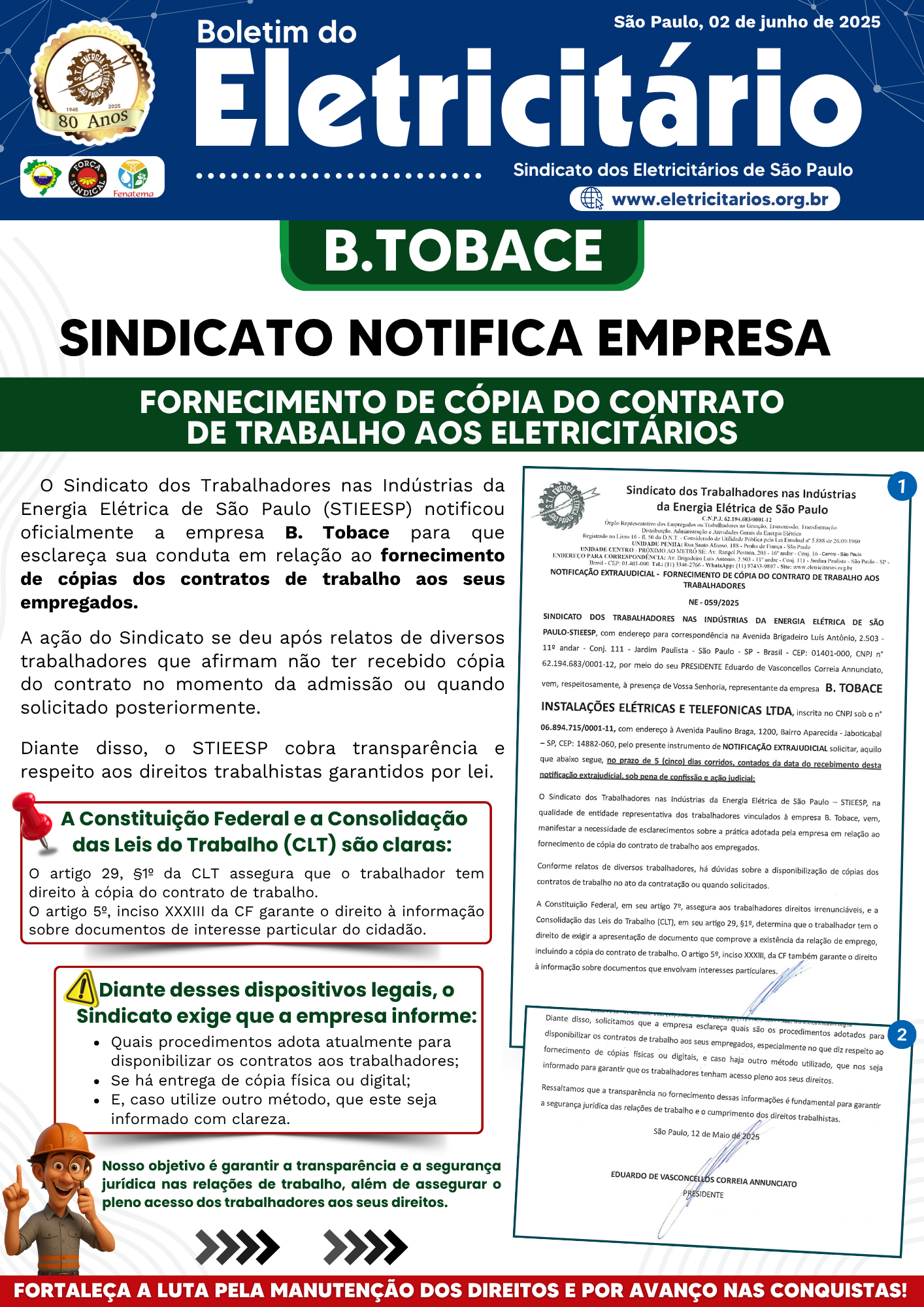 B. Tobace - Sindicato notifica - Fornecimento de cópia do contrato de trabalho aos Eletricitários