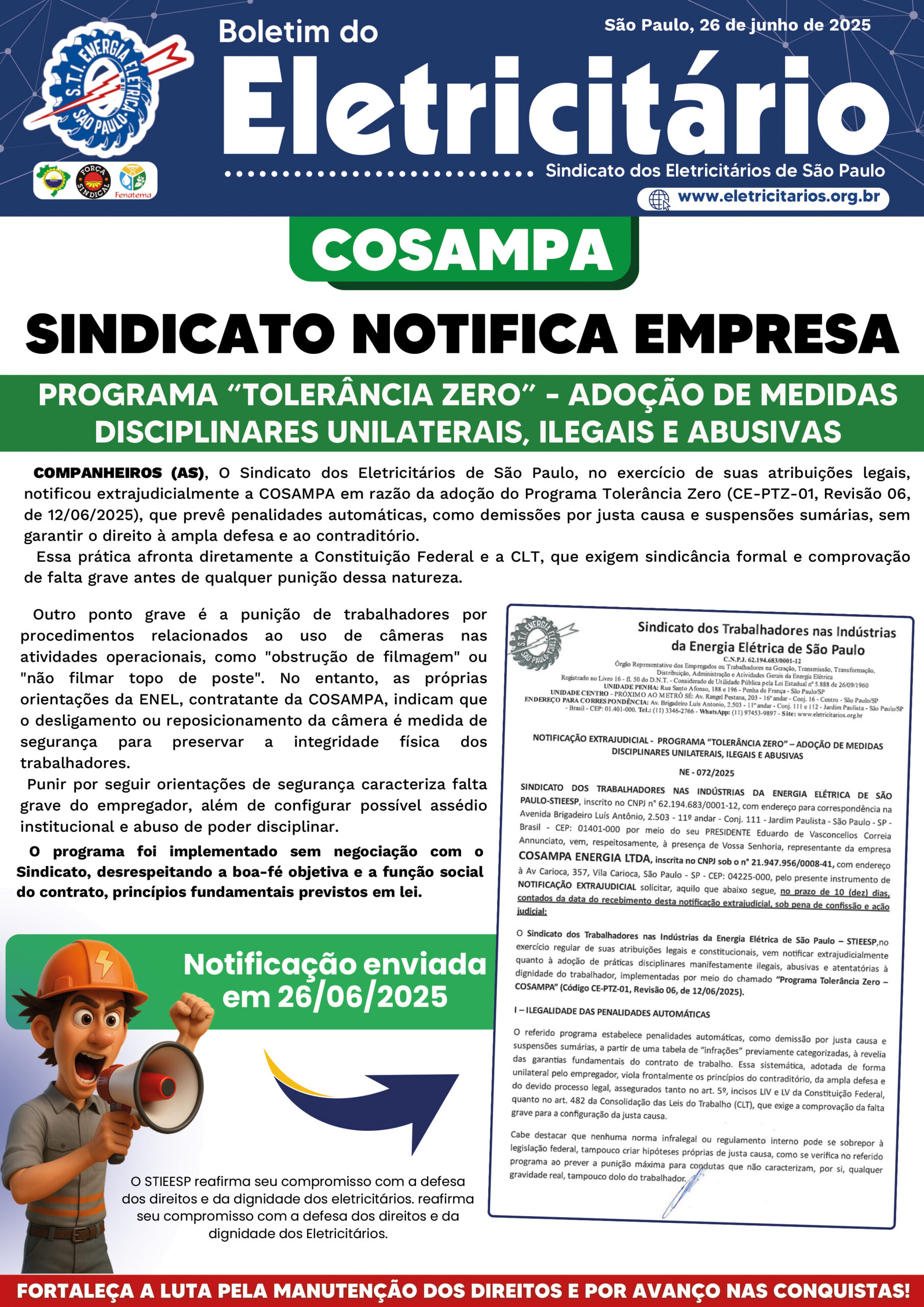 COSAMPA - PROGRAMA “TOLERÂNCIA ZERO” – ADOÇÃO DE MEDIDAS DISCIPLINARES UNILATERAIS, ILEGAIS E ABUSIVAS - 26.06.2025