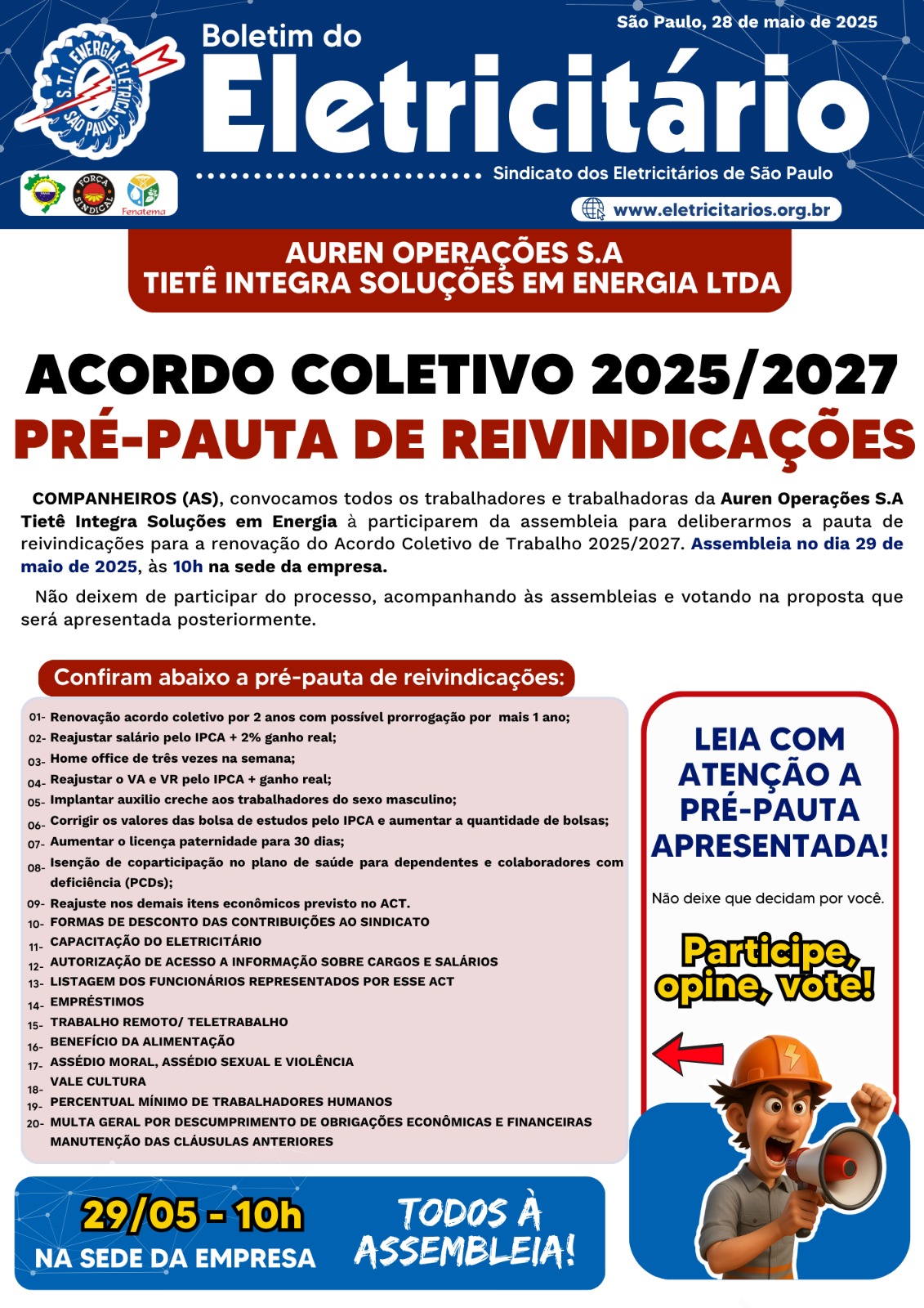 AUREN OPERAÇÕES / TIETÊ INTEGRA - PRÉ-PAUTA - TODOS À ASSEMBLEIA
