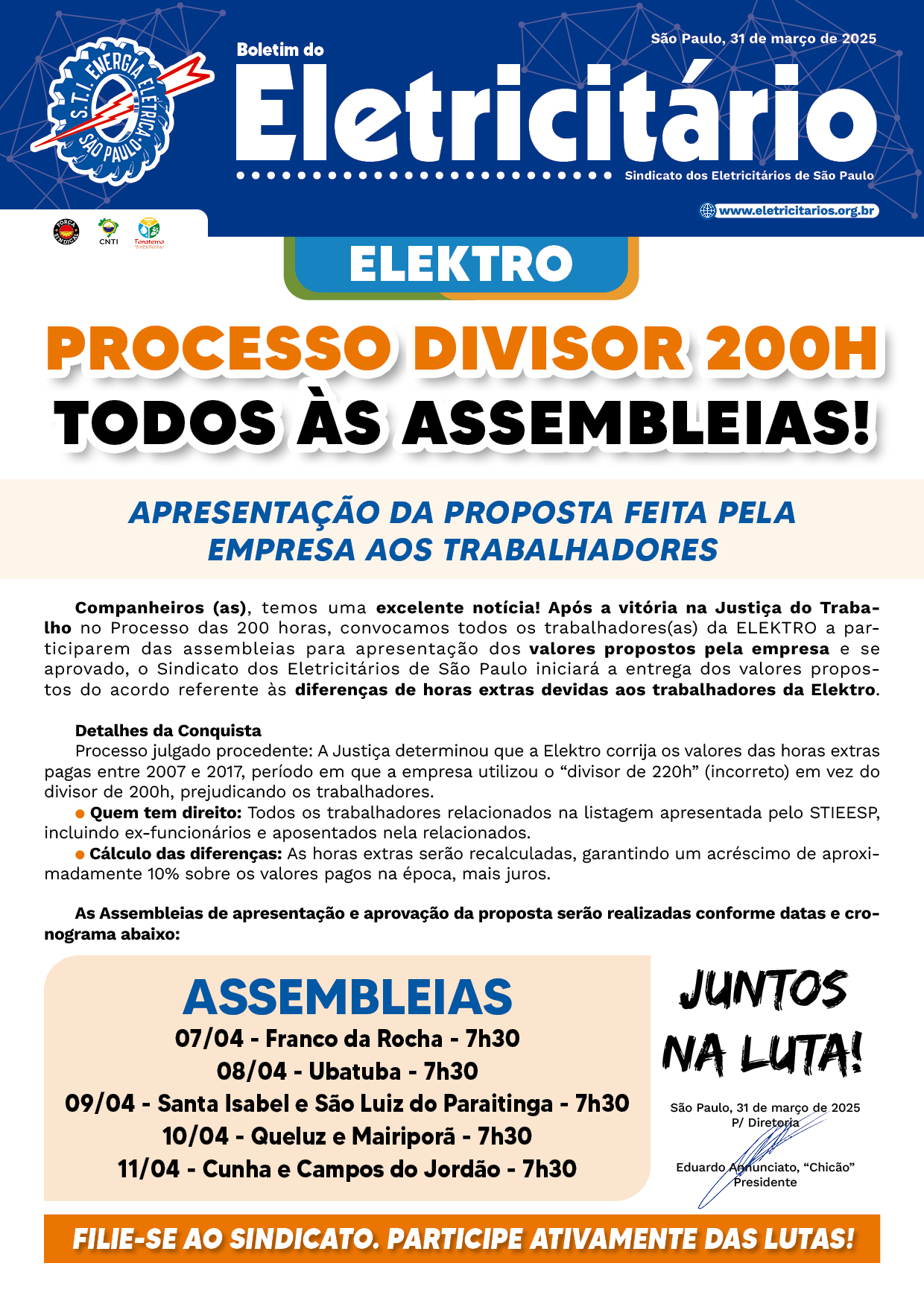 ELEKTRO - PROCESSO DIVISOR 200H - TODOS ÀS ASSEMBLEIAS