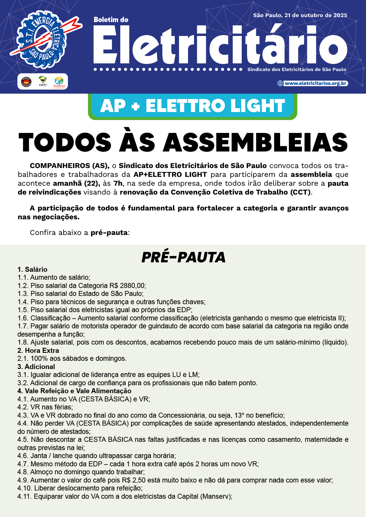 AP + ELETTRO LIGHT - TODOS À ASSEMBLEIA - PRÉ-PAUTA