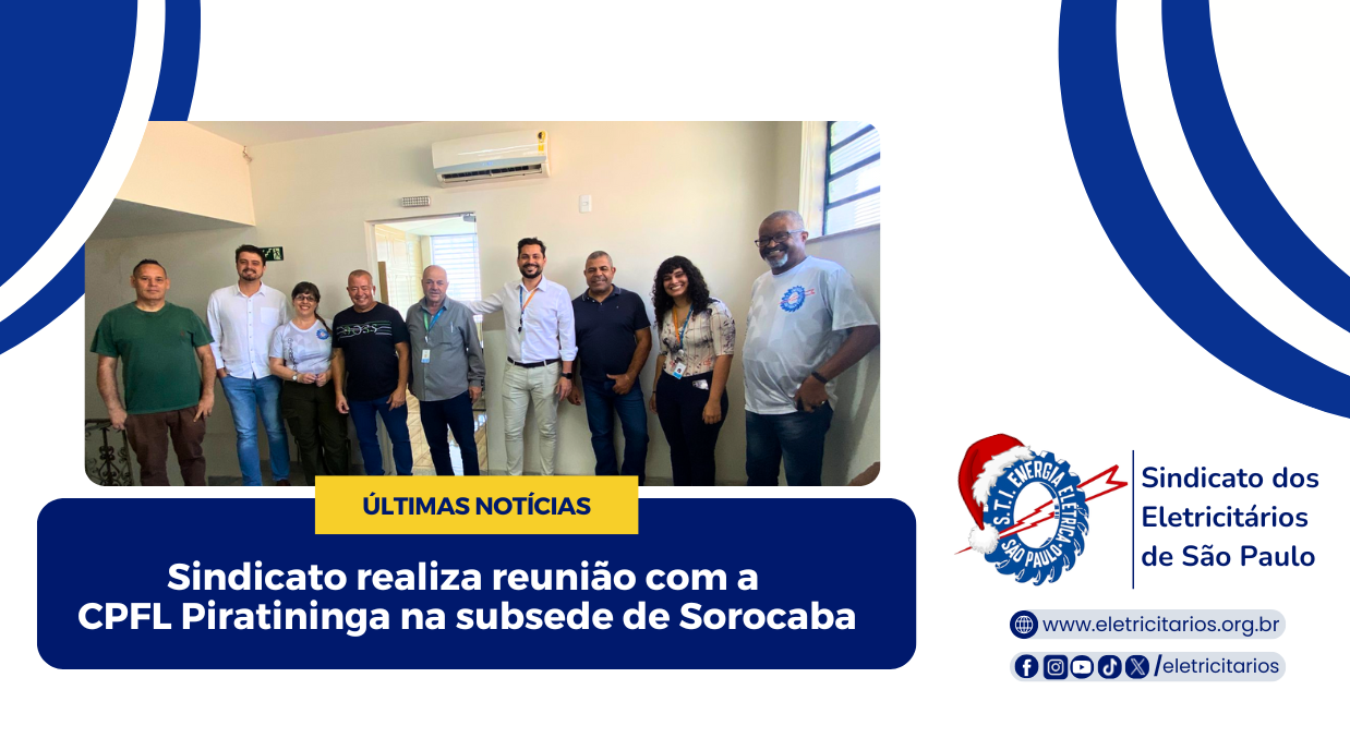 O Sindicato dos Eletricitários realizou nesta quinta (04) uma reunião com a CPFL Piratininga na subsede de Sorocaba, marcando o primeiro encontro oficial no novo espaço. Embora a unidade ainda esteja passando por ajustes e organização para iniciar os atendimentos ao público, o Sindicato já começou a utilizá-la para fortalecer sua presença na região.
