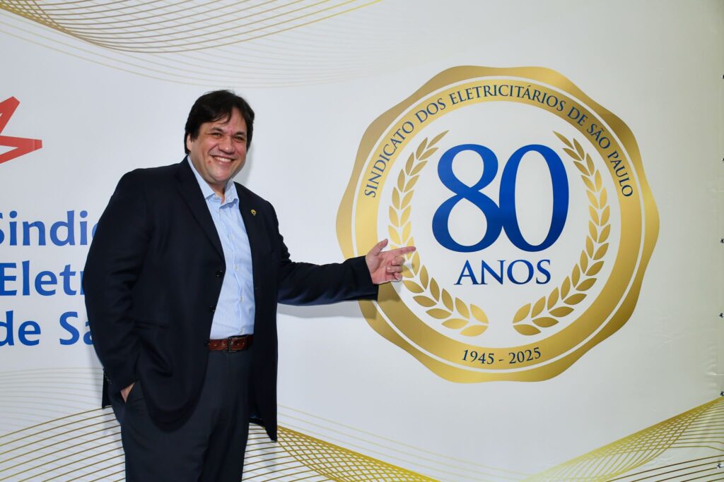 O ministro do Trabalho, Luiz Marinho, enviou um vídeo especial parabenizando a categoria Eletricitária pelos 80 anos e destacando a atuação do presidente Eduardo Annunciato (Chicão) na condução da entidade.