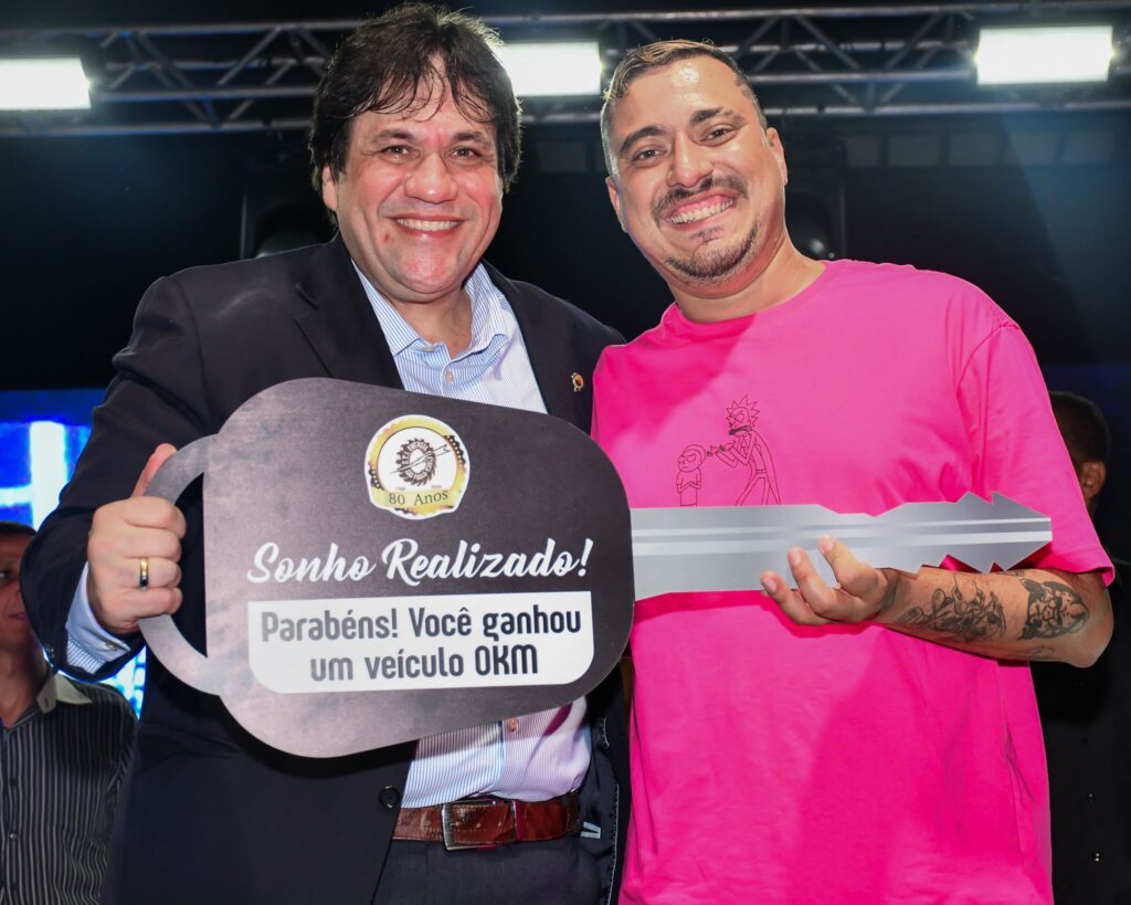 2 carros Renault Kwid 0km, sendo um deles exclusivo para associados presentes na festa.